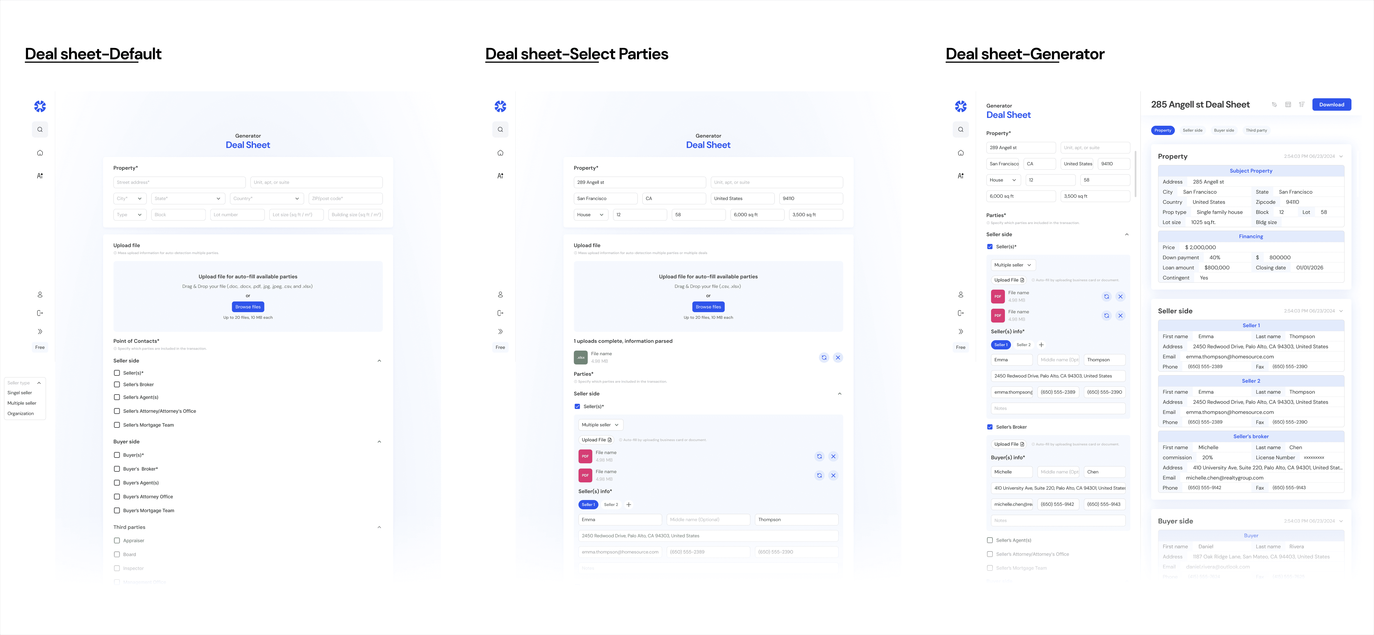 Our client has an ambitious plan to expand CaseHero into real estate document workflows as well. Some patterns we designed for immigration lawyers now translate into real estate use cases, such as the Deal Sheet Generator and Contract Generator.