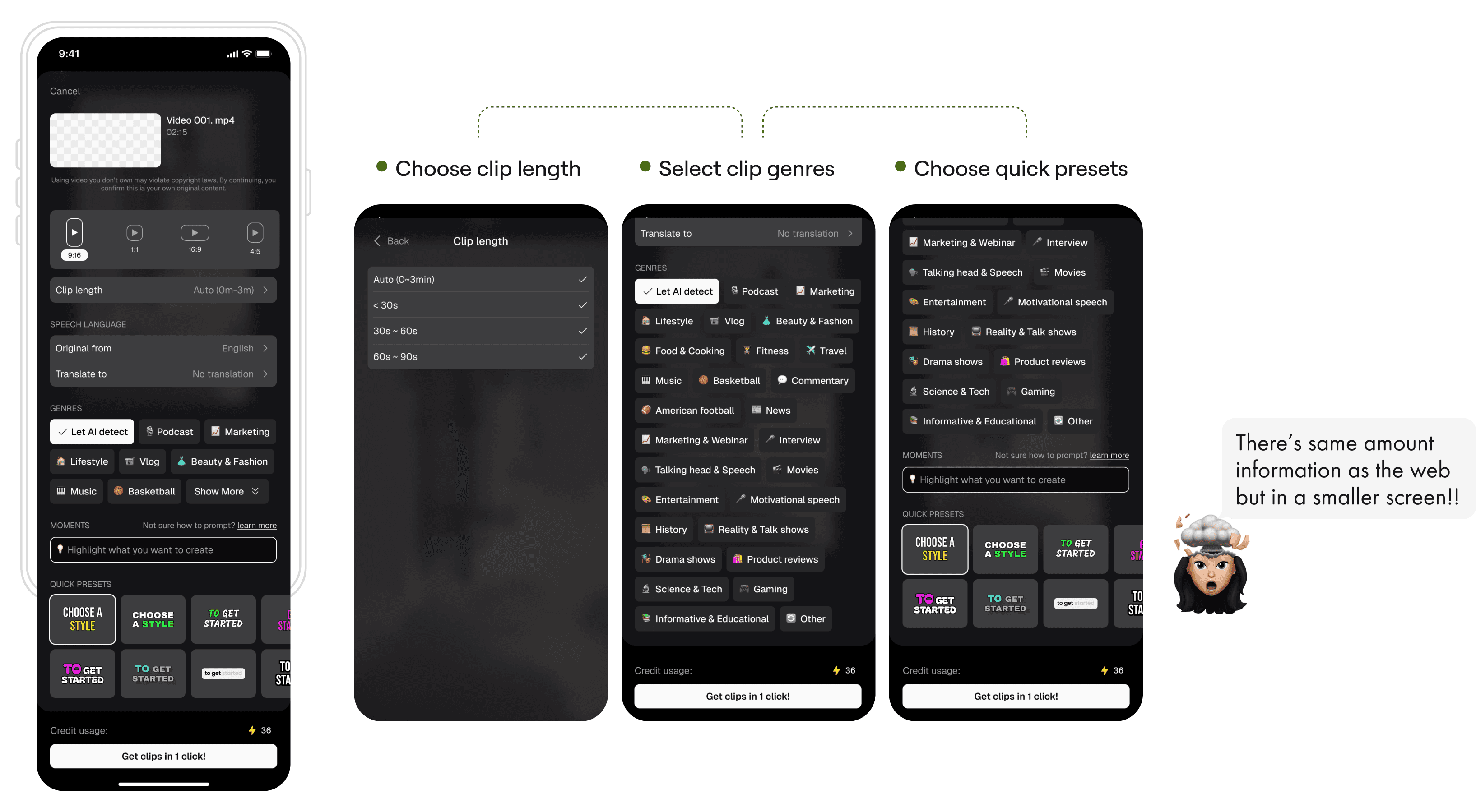 After uploading the video material, user need to choose basic settings before generating the clip.