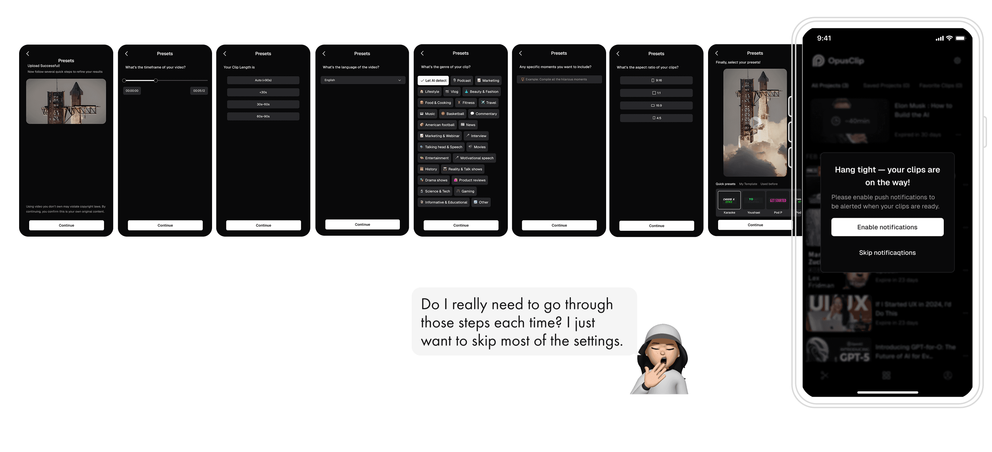 At launch, our priority is to make the OpusClip app intuitive and effortless for creators who already know and love our web platform. Instead of overwhelming users with new tools or advanced settings, we focus on delivering a familiar, streamlined experience that just works.
