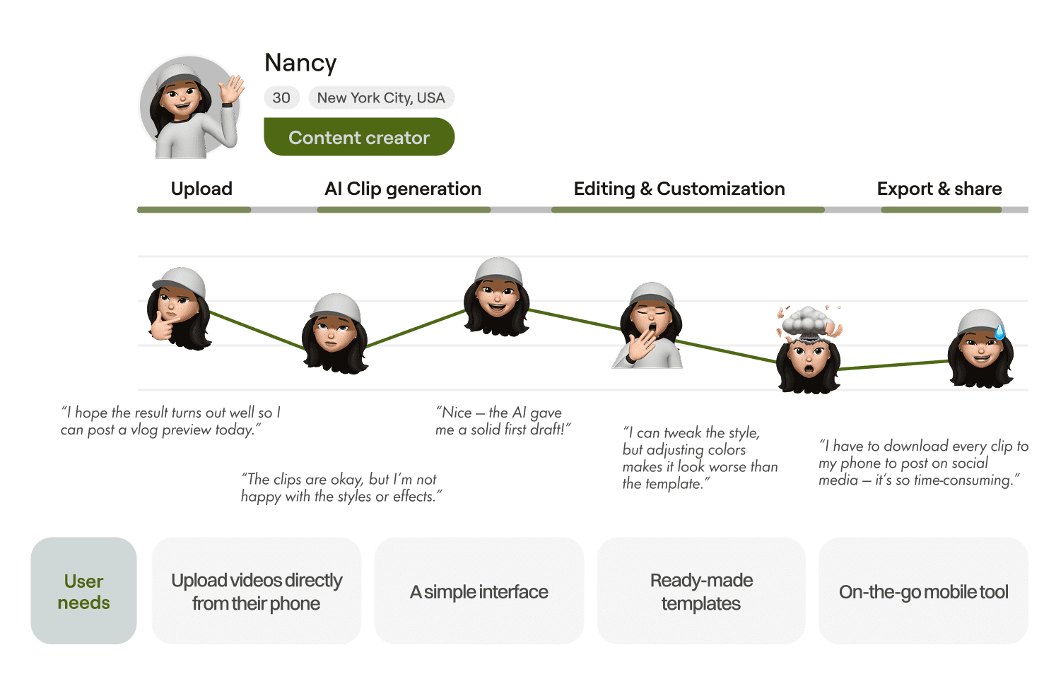 How might we help mobile users preview AI generate clips and compare them to select the best one?
